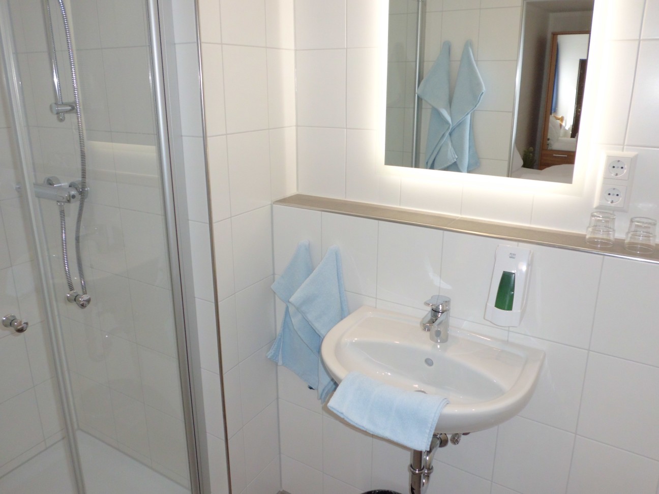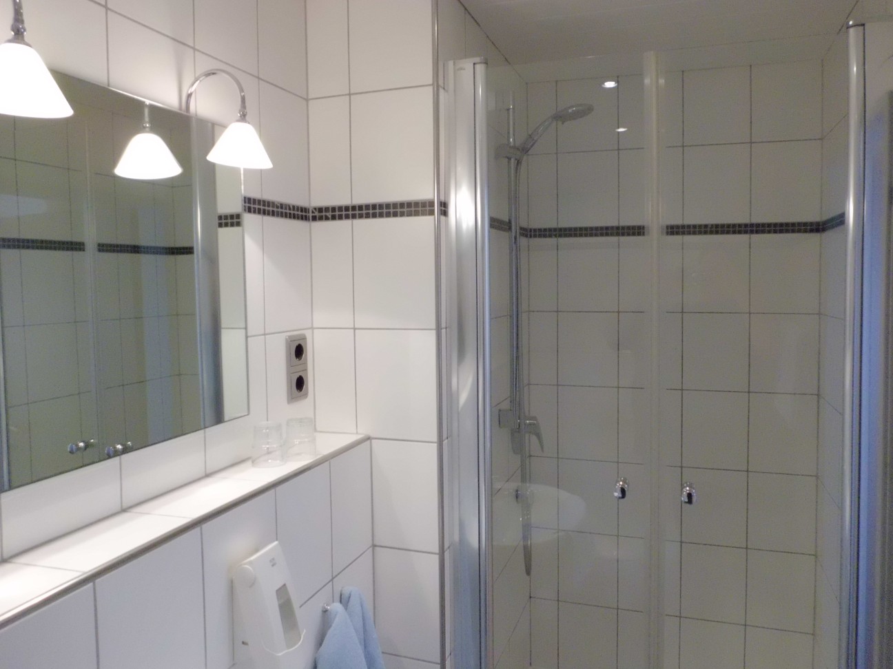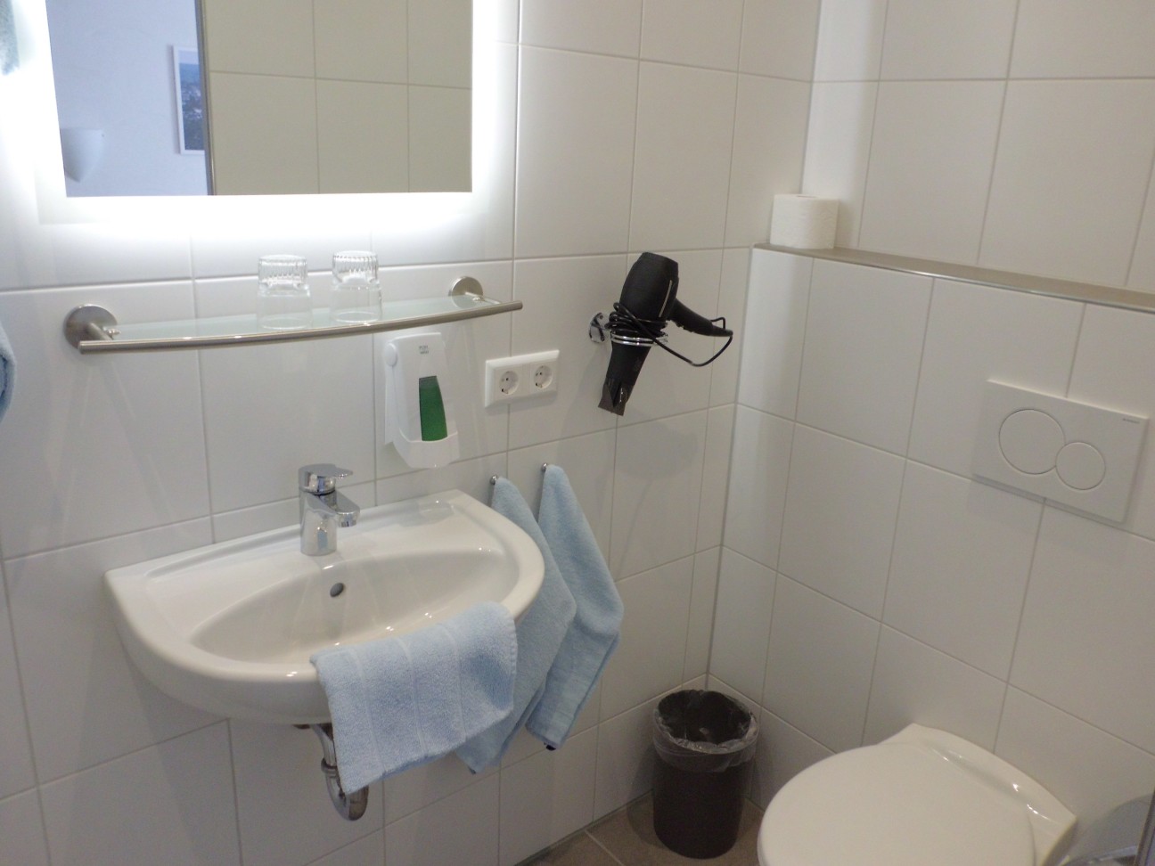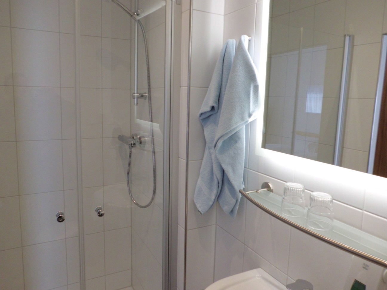 Farbfernseher (Kabelanschluß), WLAN, Dusche und WC.